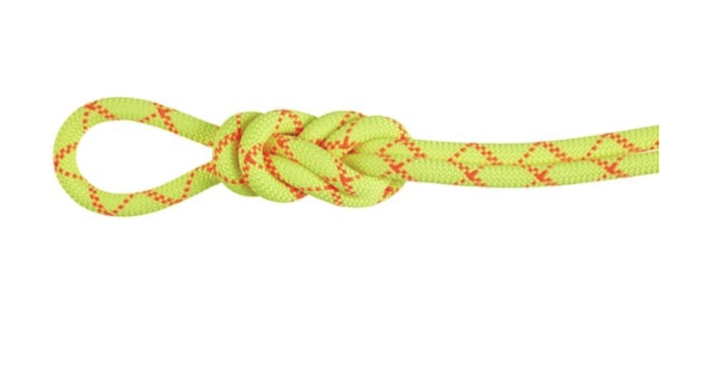Half ropes are also typically 7-8 mm in diameter, the difference being that the climber will alternate clipping each rope into different pieces of gear to reduce rope drag, lower the fall force on each piece of gear, as well as provide the same rappelling advantages of twin ropes. One of the main takeaways here is that twin and half ropes are not rated for single use, which means they cannot safely handle a fall on their own, due to their extremely small diameter. The symbol for a half rope is: